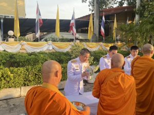 วันนี้ ( 14 ม.ค. 68 ) เวลา 07.00น. พ.ต.อ.วิวัฒน์ อัศวะวิบูลย์ ผกก.สภ.เมืองปทุมธานี ได้เข้าร่วมพิธีเจริญพระพุทธมนต์และทำบุญตักบาตรถวายพระราชกุศลเนื่องในโอกาสพระราชพิธีสมมงคลพระชนมายุเท่าพระบาทสมเด็จพระพุทธยอดฟ้าจุฬาโลกมหาราชสมเด็จพระปฐมบรมกษัตริยาธิราชแห่งพระราชวงศ์จักรี โดยมี นายสมคิด จันทมฤก ผู้ว่าราชการจังหวัดปทุมธานี เป็นประธานในพิธี พร้อมด้วยหัวหน้าส่วนราชการที่เกี่ยวข้องเข้าร่วมพิธี บริเวณหน้าสำนักงานเหล่ากาชาดจังหวัดปทุมธานี