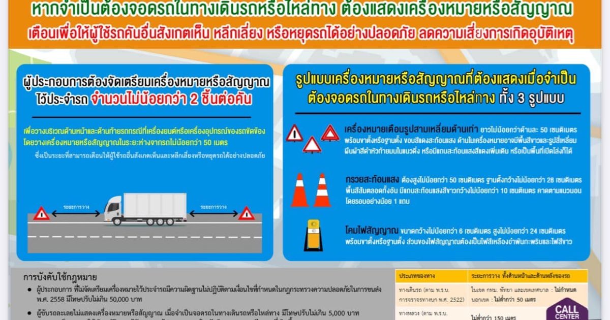 เรื่อง การจัดให้มีเครื่องหมายหรือสัญญาณที่จะต้องแสดงเมื่อจำเป็นต้องจอดรถในทางเดินรถหรือไหล่ทาง