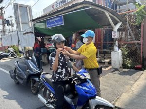 วันที่ 11 – 16 เม.ย.68 เวลา 09.00 น. ภายใต้การอำนวยการของ พล.ต.ต.ยุทธนา จอนขุน ผบก.ภ.จว.ปทุมธานี นำโดย พ.ต.อ.วิวัฒน์ อัศวะวิบูลย์ ผกก.สภ.เมืองปทุมธานี พร้อมด้วยข้าราชการตำรวจจิตอาสา สภ.เมืองปทุมธานี ได้ร่วมทำจัดกิจกรรมจิตอาสารณรงค์การขับขี่ปลอดภัยในช่วงเทศกาลสงกรานต์ พ.ศ.2568 สวมหมวกนิรภัยเพื่อลดอุบัติเหตุจราจรทางบก ณ บริเวณ จุดตรวจกวดขันวินัยจราจรหน้งถังดอกบัว ถนน 3111 เจ้าหน้าที่จิตอาสาและเจ้าหน้าที่ตำรวจจราจรได้ทำการมอบหมวกนิรภัยแก่ผู้ใช้รถจักรยานยนต์