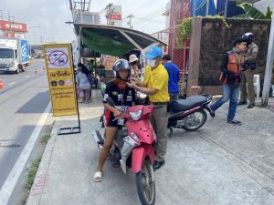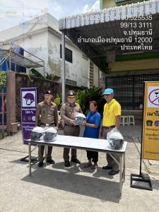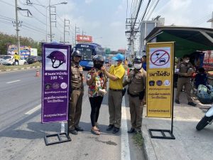 วันที่ 11 – 16 เม.ย.68 เวลา 09.00 น. ภายใต้การอำนวยการของ พล.ต.ต.ยุทธนา จอนขุน ผบก.ภ.จว.ปทุมธานี นำโดย พ.ต.อ.วิวัฒน์ อัศวะวิบูลย์ ผกก.สภ.เมืองปทุมธานี พร้อมด้วยข้าราชการตำรวจจิตอาสา สภ.เมืองปทุมธานี ได้ร่วมทำจัดกิจกรรมจิตอาสารณรงค์การขับขี่ปลอดภัยในช่วงเทศกาลสงกรานต์ พ.ศ.2568 สวมหมวกนิรภัยเพื่อลดอุบัติเหตุจราจรทางบก ณ บริเวณ จุดตรวจกวดขันวินัยจราจรหน้งถังดอกบัว ถนน 3111 เจ้าหน้าที่จิตอาสาและเจ้าหน้าที่ตำรวจจราจรได้ทำการมอบหมวกนิรภัยแก่ผู้ใช้รถจักรยานยนต์