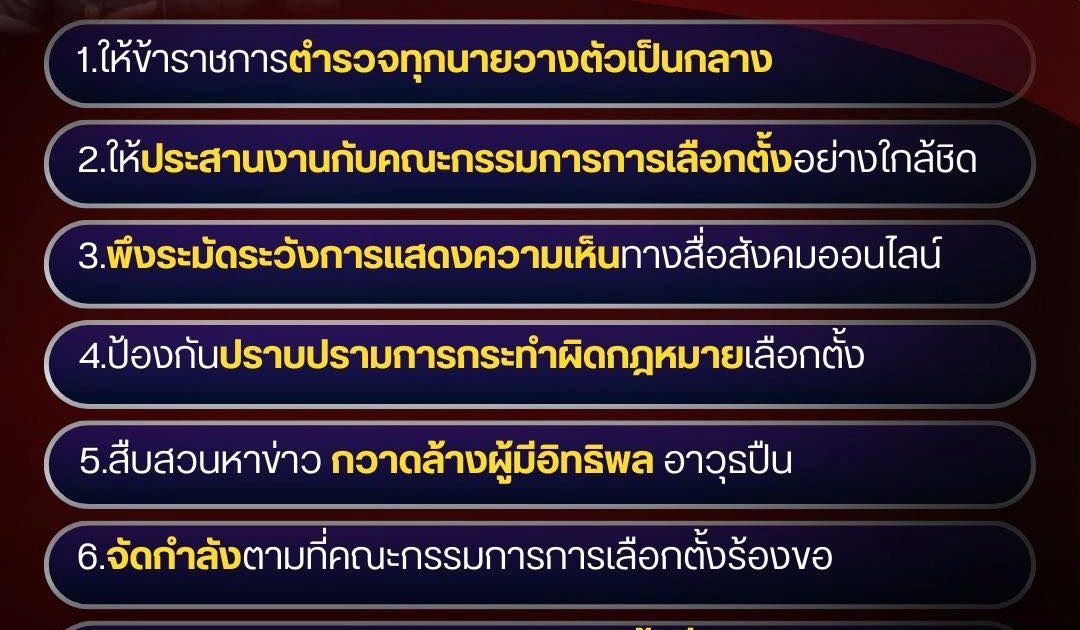 ข้อสั่งการ พล.ต.อ.กิตติ์รัฐ พันธุ์เพ็ชร์ ผู้บัญชาการตำรวจแห่งชาติ กำชับ “ตำรวจ” ดูแลความปลอดภัย สงบเรียบร้อยการเลือกตั้ง สส. และออกเสียงประชามติ 2569