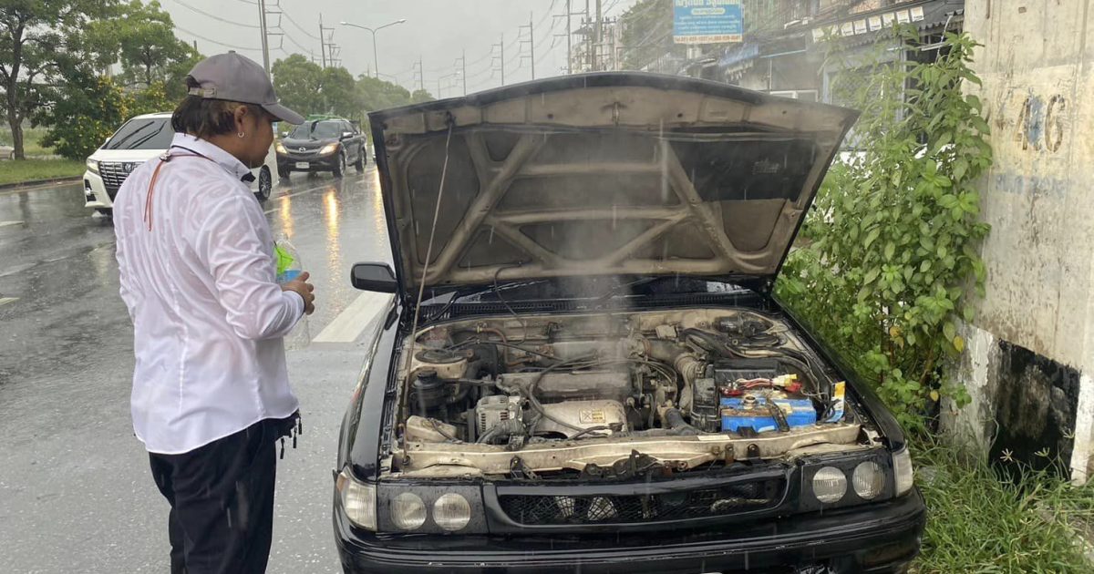 เจ้าหน้าที่จราจรช่วยเหลือประชาชนระบบหม้อน้ำรถยนต์