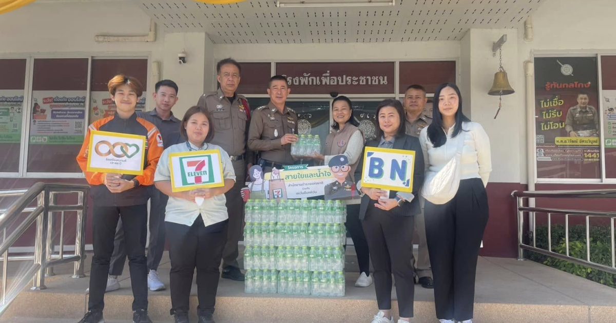 บริษัท ซีพี ออลล์ จำกัด (มหาชน) ได้นำน้ำดื่ม จำนวน 26 แพ็ค มามอบให้ สภ.เมืองปทุมธานี