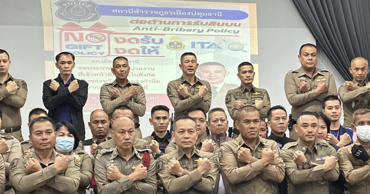 วันที่ 3 เม.ย.68 เวลา 14.00 น. พ.ต.อ.วิวัฒน์ อัศวะวิบูลย์ ผกก.สภ.เมืองปทุมธานี, พ.ต.ท.เกษม ศรีจันทร์อินทร์ รอง ผกก.ป.สภ.เมืองปทุมธานี ,พ.ต.ท.ขจร ฉัตรแก้วมณี รอง ผกก.(สอบสวน) สภ.เมืองปทุมธานี, พ.ต.ท.ธไท ศลิษฏานนท์ รอง ผกก.สส.สภ.เมืองปทุมธานี พร้อมด้วยข้าราชการตำรวจในสังกัด สภ.เมืองปทุมธานี ร่วมประชุมข้าราชการตำรวจประจำเดือน มี.ค.2568 โดยได้ชี้แจงข้อสั่งการการปฏิบัติ, มอบหมายนโยบายต่าง ๆ, แนะนำตัวข้าราชการตำรวจที่มาดำรงตำแหน่งใหม่, ประดับยศข้าราชการตำรวจ, มอบประกาศนียบัตรข้าราชการตำรวจดีเด่นประจำเดือน และร่วมกันปฏิบัติตามนโยบายไม่รับของขวัญและของกำนัลทุกชนิด (No Gift Policy) ณ ห้องประชุม ชั้น 4 สภ.เมืองปทุมธานี