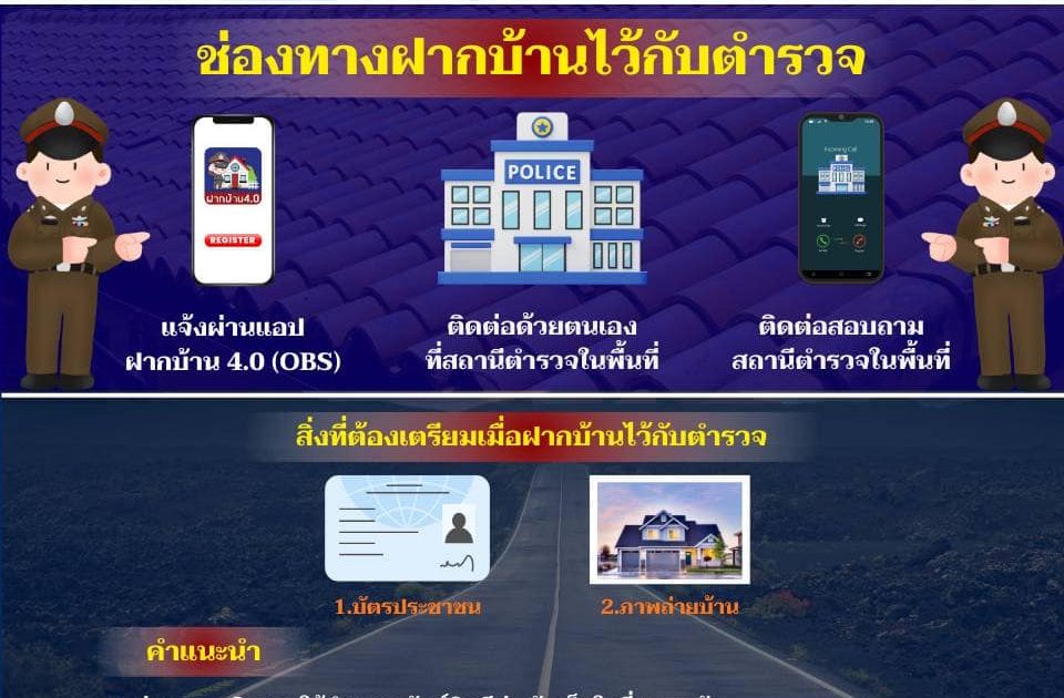 – ติดตามการอัปเดตข้อมูลรายงาน “ฝากบ้าน” จากเจ้าหน้าที่ตำรวจเสมอ