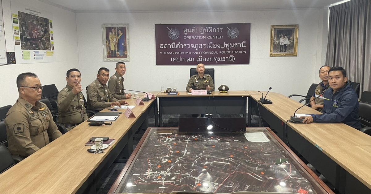 พร้อมด้วยข้าราชการตำรวจ สภ.เมืองปทุมธานี ให้การต้อนรับและรอรับการตรวจเยี่ยม ณ สภ.เมืองปทุมธานี