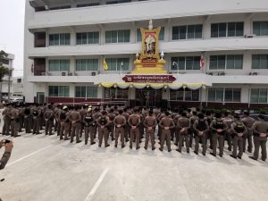โดยมี พล.ต.ต.ยุทธนา จอนขุน ผบก.ภ.จว.ปทุมธานี , พ.ต.อ.นิรันดร ฟักสุบัน รอง ผบก.ภ.จว.ปทุมธานี, พ.ต.อ.วิวัฒน์ อัศวะวิบูลย์ ผกก.สภ.เมืองปทุมธานี , พ.ต.ท.เกษม ศรีจันทร์อินทร์ รอง ผกก.ป.ฯ , พ.ต.ท.สามารถ เปาจีน รอง ผกก.จร.ฯ , พ.ต.ท.เสฏฐพงศ์ ทรงกรด รอง ผกก.สส.ฯ พร้อมด้วย ชุดกองร้อยควบคุมฝูงชน ภ.จว.ปทุมธานี จำนวน 56 นาย , ข้าราชการตำรวจ สภ.เมืองปทุมธานี จำนวน 54 นาย รวมทั้งสิ้น 110 นาย เข้าร่วมอบรมปล่อยแถวรับฟังนโยบายข้อปฏิบัติ ณ บริเวณลานหน้า สภ.เมืองปทุมธานี