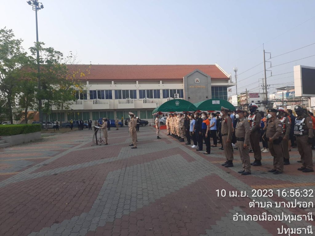 วันนี้ (10 เม.ย.66) เวลา 17.00 น. ภายใต้การ อำนวยการของ พล.ต.ต.ชุมพล ชาญชนะโยธิน ผบก.ภ.จว.ปทุมธานี พ.ต.อ.โชคชัย คณะเจริญ รอง ผบก.ภ.จว.ปทุมธานี, พ.ต.อ.วิวัฒน์ อัศวะวิบูลย์ ผกก.สภ.เมืองปทุมธานี, พ.ต.ท.ขจร ฉัตรแก้วมณี ปรท.ผกก.สภ.เมืองปทุมธานี, พ.ต.ท.เกษม ศรีจันทร์อินทร์ รอง ผกก.ป.สภ.เมืองปทุมธานี, พ.ต.ท.สุภกร ยิ้มแย้ม สวป.ฯ เวร 70, ร.ต.อ.ศุภชัย ภาวงศ์ รอง สวป.ฯเวร-20 และ ร.ต.อ.สมร เพชรแสน รอง สวป.ฯ
