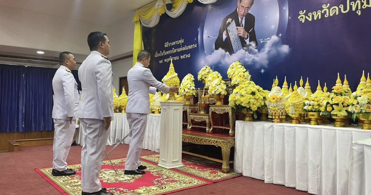ผกก.สภ.เมืองปทุมธานี เข้าร่วมพิธีวางพานพุ่มเนื่องในวันพระบิดาแห่งฝนหลวง จังหวัดปทุมธานี ณ อาคารศาลารักษ์ปทุม ศาลากลางจังหวัดปทุมธานี โดยมี นายเอกวิทย์ มีเพียร ผู้ว่าราชการจังหวัดปทุมธานี เป็นประธานในพิธี พร้อมด้วยหัวหน้าส่วนราชการ และหน่วยงานราชการที่เกี่ยวข้องเข้าร่วมพิธี เพื่อน้อมรำลึกในพระมหากรุณาธิคุณพระบาทสมเด็จพระมหาภูมิพลอดุลยเดชมหาราช บรมนาถบพิตร