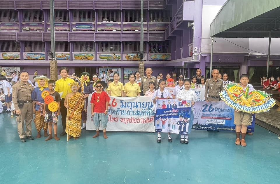 วันที่ 26 มิ.ย.67 เวลา 09.00น. พ.ต.อ.วิวัฒน์ อัศวะวิบูลย์ ผกก.สภ.เมืองปทุมธานี เป็นประธานในพิธีเปิด “ วันต่อต้านยาเสพติดโลก “ โดยมีผู้อำนวยการโรงเรียนวัดหงส์ปทุมาวาส คณะครู และนักเรียนร่วมกิจกรรม มีการมอบใบประกาศนียบัตรแก่นักเรียนและการเดินรณรงค์ต่อต้านยาเสพติด ตั้งแต่โรงเรียนวัดหงส์ปทุมาวาสจนถึงสวนเทพปทุมธานี เพื่อให้นักเรียนและประชาชนในเขตพื้นที่ตระหนักถึงพิษภัยของยาเสพติดและเห็นความสำคัญของการต่อต้านยาเสพติด