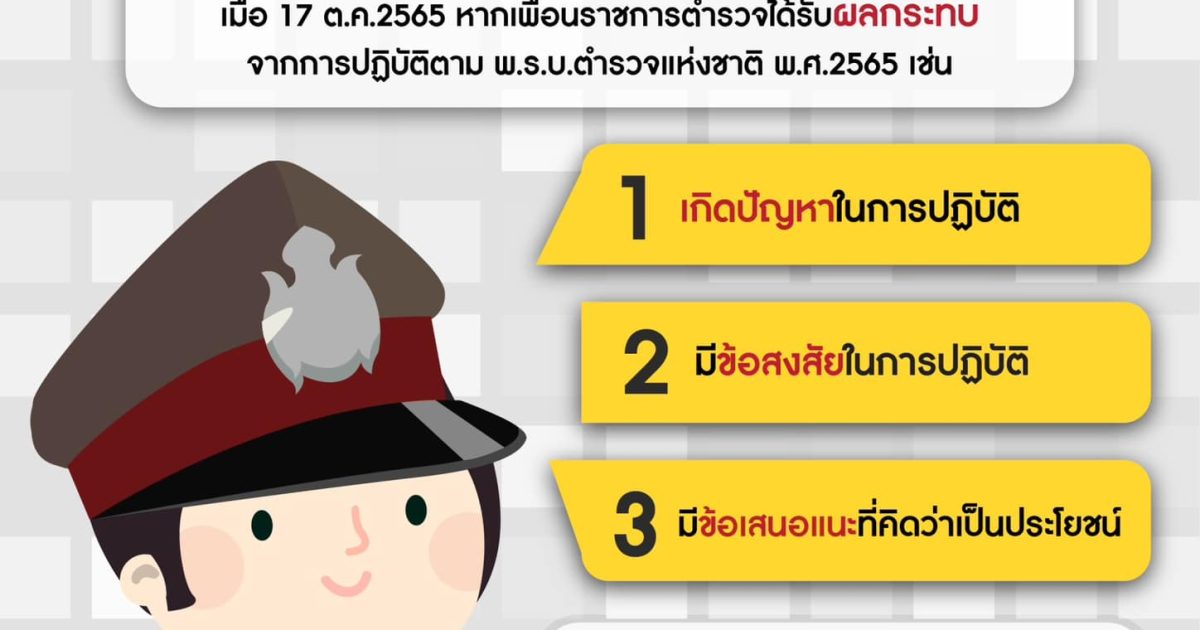 สามารถส่งปัญหา ข้อสงสัย หรือข้อเสนอแนะมาได้ที่อีเมล police.informations2022@gmail.com