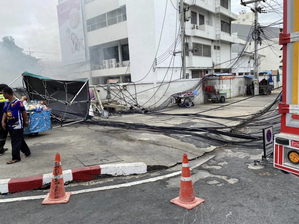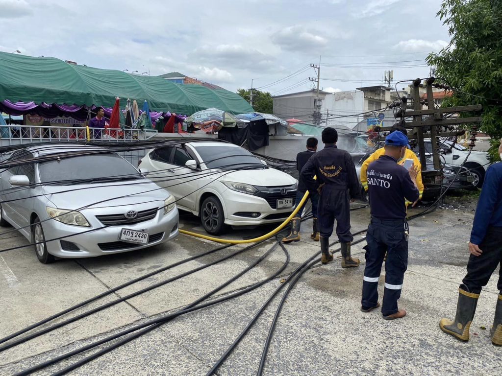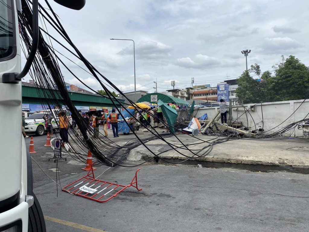 เกิดเหตุ รถบรรทุกเกี่ยวสายไฟ ภายในตลาดปทุม บริเวณหน้าธนาคารออมสิน ถ.เทศปทุม