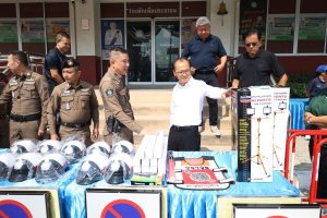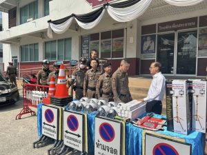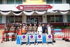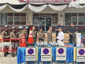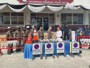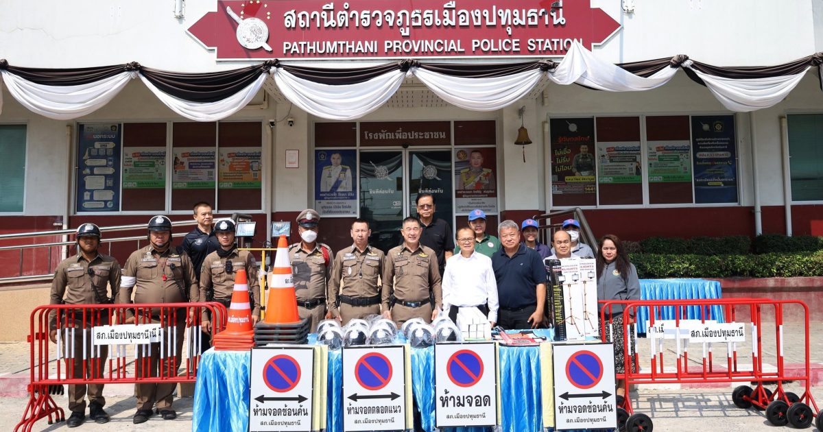 รับมอบวัสดุอุปกรณ์จราจร โดยสำนักงานเทศบาลเมืองปทุมธานี 26 มีนาคม 2569 โดย admin / ข่าวภารกิจผู้บังคับบัญชา วันนี้ 26 มี.ค.69 เวลา 10.00 น. พ.ต.อ.วิวัฒน์ อัศวะวิบูลย์ ผกก.สภ.เมืองปทุมธานี, พ.ต.ท.วีระ นุชศิลป์ รอง ผกก.จร.สภ.เมืองปทุมธานี พร้อมด้วยข้าราชการตำรวจจราจร สภ.เมืองปทุมธานี ได้รับมอบวัสดุอุปกรณ์จราจร แผงเหล็ก กรวยยาง กระบองไฟ หมวกจราจร ป้ายห้ามจอด ฯลฯ จากสำนักงานเทศบาลเมืองปทุมธานี โดยมี พล.ต.ต.พงษ์สวัสดิ์ หาญสวัสดิ์ นายกเทศมนตรีเมืองปทุมธานี พร้อมด้วย นายจักรี ชนะดี เลขานุการนายกเทศมนตรี นายวริทธิ์พล ยี่สุ่นซ้อน นายธานี หาญยานนท์ สมาชิกสภาเทศบาล นางสาวรุ่งทิพย์ กาฬภักดี รองปลัดเทศบาล และเจ้าหน้าที่สำนักปลัดเทศบาล เป็นผู้แทนในการมอบ สภ.เมืองปทุมธานี ขอขอบคุณ มา ณ โอกาสนี้ FacebookFacebookXXLINELine