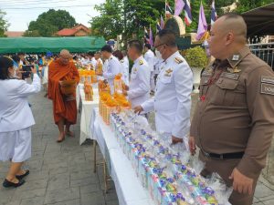 วันที่ 3 มิ.ย.68 เวลา 07.00 น. พล.ต.ต.ยุทธนา จอนขุน ผบก.ภ.จว.ปทุมธานี มอบหมายให้ พ.ต.อ.วิวัฒน์ อัศวะวิบูลย์ ผกก.สภ.เมืองปทุมธานี, พ.ต.ท.วุฒิวรพงษ์ แหวนประดับ สวป.สภ.เมืองปุมธานี และข้าราชการตำรวจในสังกัด สภ.เมืองปทุมธานี ให้เข้าร่วมกิจกรรมเฉลิมพระเกียรติสมเด็จพระนางเจ้าฯ พระบรมราชินี ร่วมพิธีเจริญพระพุทธมนต์และทำบุญตักบาตรถวายพระราชกุศล เนื่องในโอกาสวันเฉลิมพระชนมพรรษา สมเด็จพระนางเจ้าฯ พระบรมราชินี ณ หน้าสำนักงานเหล่ากาชาดจังหวัดปทุมธานีและพิธีปล่อยพันธ์สัตว์น้ำบริเวณท่าน้ำสวนเทพปทุม