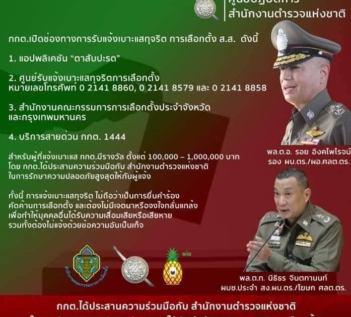 กกต. เปิดช่องทางการรับแจ้งเบาะแสทุจริต การเลือกตั้งสมาชิกสภาผู้แทนราษฎร ดังนี้