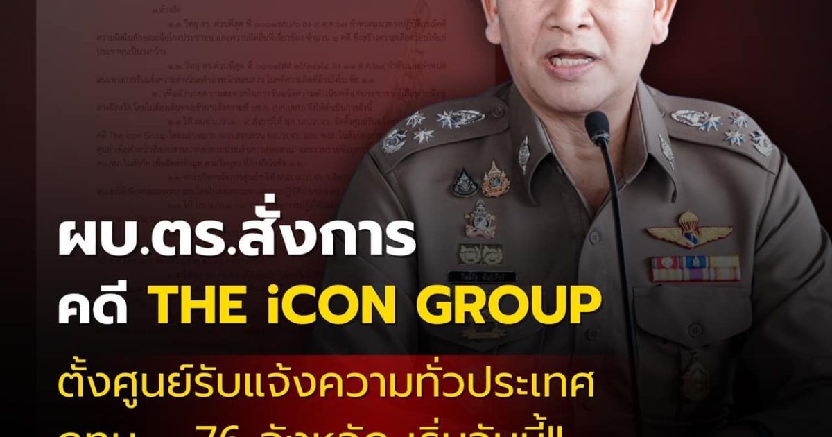 สำนักงานตำรวจแห่งชาติเปิด “ศูนย์รับแจ้งความ คดี THE iCON GROUP” ทั่วประเทศ 9 ศูนย์ใน กทม. พื้นที่ดูแลของกองบัญชาการตำรวจนครบาล และ 76 ศูนย์ ทุกจังหวัดในพื้นที่การดูแลของตำรวจภูธรภาค 1 – 9 เพื่ออำนวยความสะดวกให้แก่ประชาชนผู้เสียหาย และลดความยุ่งยากในการแจ้งความ