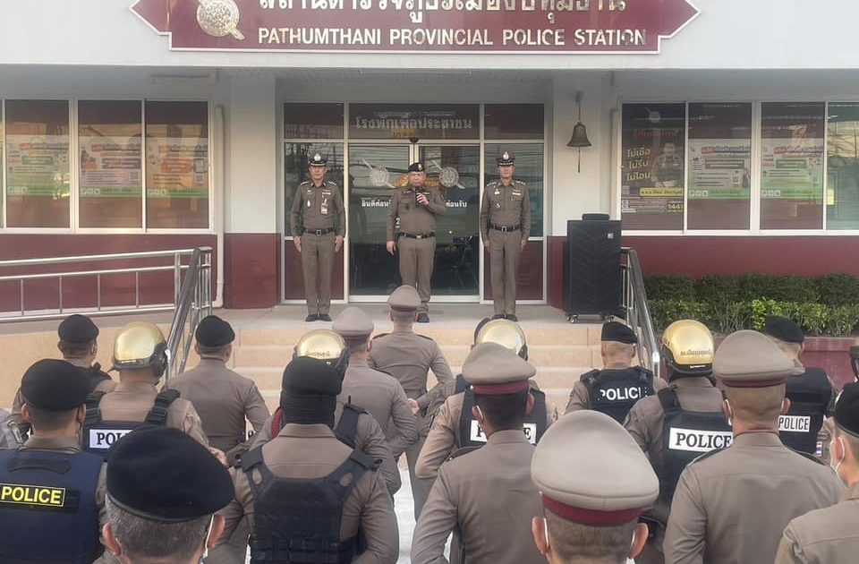 พล.ต.ต.ยุทธนา จอนขุน ผบก.ภ.จว.ปทุมธานี พร้อมด้วย พ.ต.อ.พีรพล โชติกเสถียร รอง ผบก.ภ.จว.ปทุมธานีพ.ต.อ.วิวัฒน์ อัศวะวิบูลย์ ผกก.สภ.เมืองปทุมธานี ได้อบรมปล่อยแถวข้าราชการตำรวจ สภ.เมืองปทุมธานี ออกปฎิบัติหน้าที่รักษาความสงบเรียบร้อยและอำนวยความสะดวกด้านการจราจรเนื่องในประเพณีวันลอยกระทง ประจำปี 2566 ณ สภ.เมืองปทุมธานี กำชับการปฏิบัติเน้นออกตรวจตราป้องกันอาชญากรรม และการลักลอบเล่นดอกไม้เพลิง ดอกไม้ไฟ พลุ ประทัด และสิ่งผิดกฎหมายอื่นอย่างเข้มงวดในเขตพื้นที่รับผิดชอบ