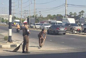 เจ้าหน้าที่จราจร เก็บกวาดเศษหินตกหล่นบนพื้นผิวการจราจร เพื่อป้องกันการเกิดอุบัติเหตุกับผู้ใช้รถใช้ถนน 6 มกราคม 2569 โดย admin / ข่าวภารกิจทั่วไป เจ้าหน้าที่จราจร เก็บกวาดเศษหินตกหล่นบนพื้นผิวการจราจร เพื่อป้องกันการเกิดอุบัติเหตุกับผู้ใช้รถใช้ถนน วันนี้ (6 ม.ค. 2569) เวลา 11.00 น. ภายใต้การอำนวยการของ พ.ต.อ.วิวัฒน์ อัศวะวิบูลย์ ผกก.สภ.เมืองปทุมธานี มอบหมายให้ พ.ต.ท.วีระ นุชศิลป์ รอง ผกก.จร.สภ.เมืองปทุมธานี พร้อมด้วย ส.ต.ต.ธันวา นานุนิล ผบ.หมู่ คฝ.ฯ ปฏิบัติหน้าที่ เจ้าหน้าที่จราจร สภ.เมืองปทุมธานี ดำเนินการเก็บกวาดเศษหินตกหล่นบนพื้นผิวการจราจร เพื่อป้องกันการเกิดอุบัติเหตุกับผู้ใช้รถใช้ถนน บริเวณแยกปทุมธานีเฉลิมพระเกียรติ #ตำรวจทำดี #ตำรวจภูธรจังหวัดปทุมธานี FacebookFacebookXXLINELine