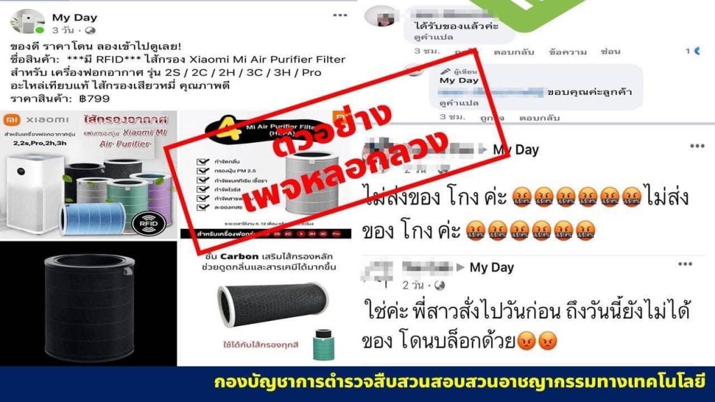 โดยเฉพาะอย่างยิ่งตามที่มีสถานการณ์ปัญหาหมอกควันและฝุ่น PM 2.5 ในพื้นที่ภาคเหนือ และภาคตะวันออกเฉียงเหนือนั้น ที่ผ่านมาหน่วยงานที่เกี่ยวข้องได้ร่วมกันแก้ไขปัญหาดังกล่าวอย่างเร่งด่วน และต่อเนื่องมาโดยตลอด แต่มิจฉาชีพกลับฉวยโอกาสใช้สถานการณ์ดังกล่าวสร้างเพจเฟซบุ๊กปลอมหลอกลวงประชาชนขายเครื่องฟอกอากาศยี่ห้อต่างๆ ประกอบกับมีการยิงโฆษณาเพื่อเข้าถึงประชาชนที่สนใจ มีการคัดลอกรูปภาพ เนื้อหาคุณสมบัติ และวิธีการใช้งานของเครื่องฟอกอากาศ จากช่องทาง หรือเว็บไซต์ทางการที่มีการซื้อจริง นอกจากนี้แล้วยังมีการจัดโปรโมชันลดราคาขายถูกกว่าท้องตลาดทั่วไป รวมไปถึงการใช้บัญชีสื่อสังคมออนไลน์หน้าม้า หรืออวตารโพสต์รีวิวสินค้า และแสดงความเห็นเพื่อสร้างความน่าเชื่อถืออีกด้วย