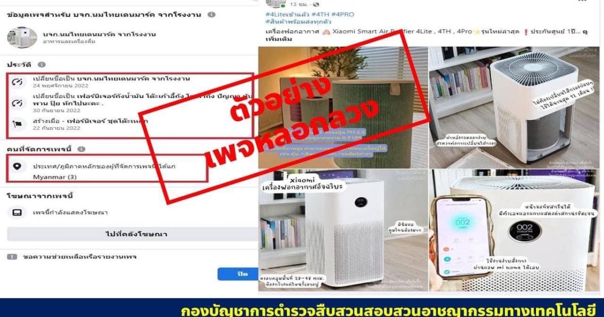 โดยเฉพาะอย่างยิ่งตามที่มีสถานการณ์ปัญหาหมอกควันและฝุ่น PM 2.5 ในพื้นที่ภาคเหนือ และภาคตะวันออกเฉียงเหนือนั้น ที่ผ่านมาหน่วยงานที่เกี่ยวข้องได้ร่วมกันแก้ไขปัญหาดังกล่าวอย่างเร่งด่วน และต่อเนื่องมาโดยตลอด แต่มิจฉาชีพกลับฉวยโอกาสใช้สถานการณ์ดังกล่าวสร้างเพจเฟซบุ๊กปลอมหลอกลวงประชาชนขายเครื่องฟอกอากาศยี่ห้อต่างๆ ประกอบกับมีการยิงโฆษณาเพื่อเข้าถึงประชาชนที่สนใจ มีการคัดลอกรูปภาพ เนื้อหาคุณสมบัติ และวิธีการใช้งานของเครื่องฟอกอากาศ จากช่องทาง หรือเว็บไซต์ทางการที่มีการซื้อจริง นอกจากนี้แล้วยังมีการจัดโปรโมชันลดราคาขายถูกกว่าท้องตลาดทั่วไป รวมไปถึงการใช้บัญชีสื่อสังคมออนไลน์หน้าม้า หรืออวตารโพสต์รีวิวสินค้า และแสดงความเห็นเพื่อสร้างความน่าเชื่อถืออีกด้วย