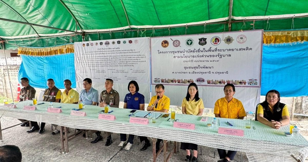 วันที่ 10 มิถุนายน 2567 เวลา 10.00 น. นางสาวประไพภักดิ์ มากเหลี่ยม ปลัดอำเภอเมืองปทุมธานีปทุมธานี(แทนนายอำเภอเมืองปทุมธานี) ประธานในพิธี เปิดโครงการดำเนินงานชุมชนบำบัดอย่างยั่งยืน ในพื้นที่แพร่ระบาดยาเสพติด ตามนโยบายเร่งด่วนของรัฐบาล โดยมี