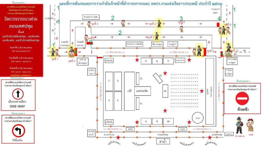 แผนที่การจัดการจราจรการแข่งขันเรือยาวประเพณี ประจำปี 2566