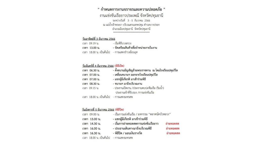 วันที่ 3-5 ธ.ค.66 ณ บริเวณท่าน้ำสวนเทพปทุม รวมไปถึงบริเวณใกล้เคียงโดยรอบ