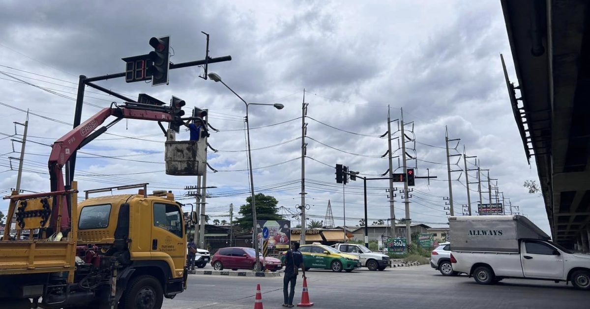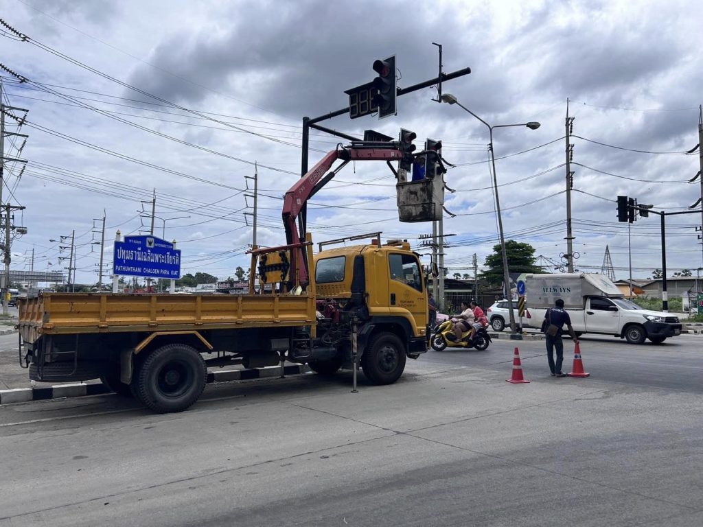 จากกรณี โคมไฟสัญญาณจราจรบริเวณแยกปทุมธานีเฉลิมพระเกียรติ(แยกสันติสุข) ได้ล่วงลงมาเมื่อวาน (17 ก.ค.66) โดยไม่มีผู้ได้รับบาดเจ็บและรถยนต์เสียหายแต่อย่างใด และในวันนี้ 18 ก.ค.2566 เวลาประมาณ 11.00 น. แขวงทางหลวงปทุมธานี ได้ส่งช่างมาดำเนินการตรวจสอบ น็อตยึดโคมไฟ ทั้ง 4 ด้าน ให้มีความมั่งคงไม่ให้ล่วงหล่นลงมาอีก และได้รับแจ้งจากช่างแขวงทางหลวงปทุมธานี จะมาดำเนินการเปลี่ยนโคมไฟให้ท้ังหมด 4 ด้าน ในภายหลัง