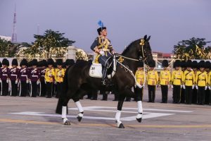 จากนั้น พลเอกหญิง สมเด็จพระเจ้าลูกเธอ เจ้าฟ้าสิริวัณณวรี นารีรัตนราชกัญญา ในตำแหน่ง “ องค์ผู้บังคับกองพันทหารม้ารักษาพระองค์ ” ทรงม้า ” Fürst Henry “ (ฟรุ๊ต เฮนรี่) อายุ 14 ปี เพศผู้ตอน สีดำ สายพันธุ์ ดัตช์ วอร์มบลัด (KWPN) จากประเทศเนเธอร์แลนด์ นำขบวนกองพันทหารม้ารักษาพระองค์ 1 กองพันเข้ามายังหน้าพลับพลาพิธี