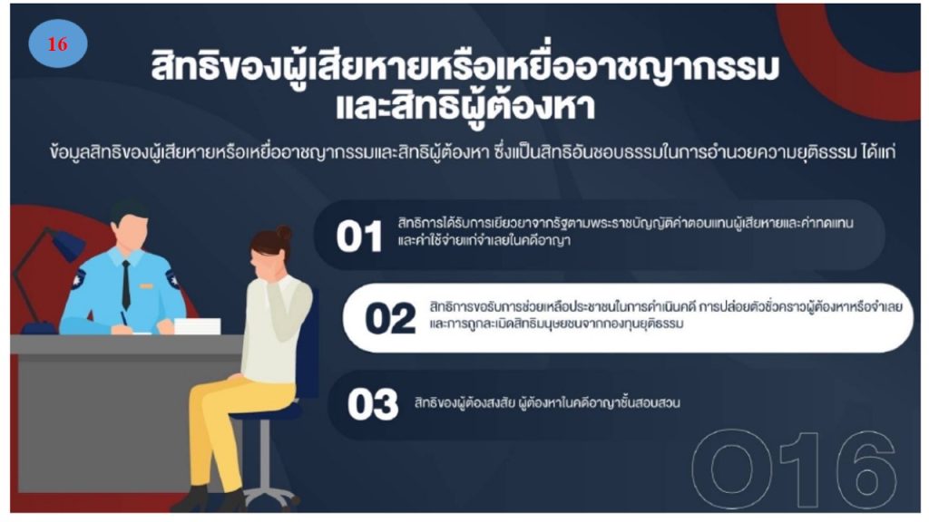 16.สิทธิของผู้เสียหายหรือเหยื่ออาชญากรรมและสิทธิของผู้ต้องหา