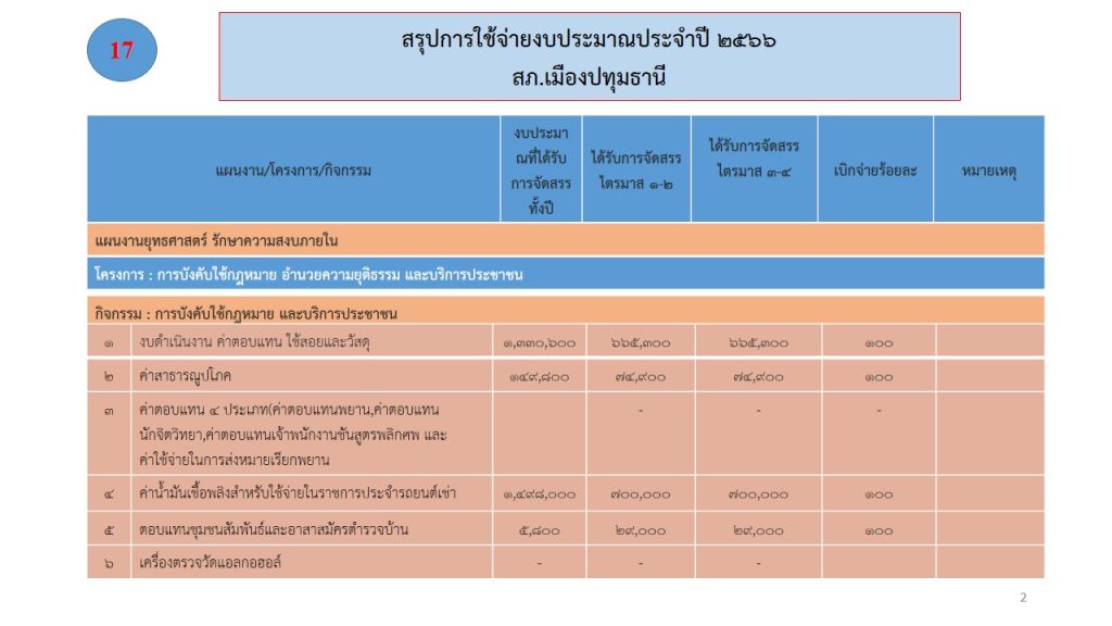 17.แผนการใช้จ่ายงบประมาณประจำปีและรายงานผลการใช้จ่ายงบประมาณประจำปี