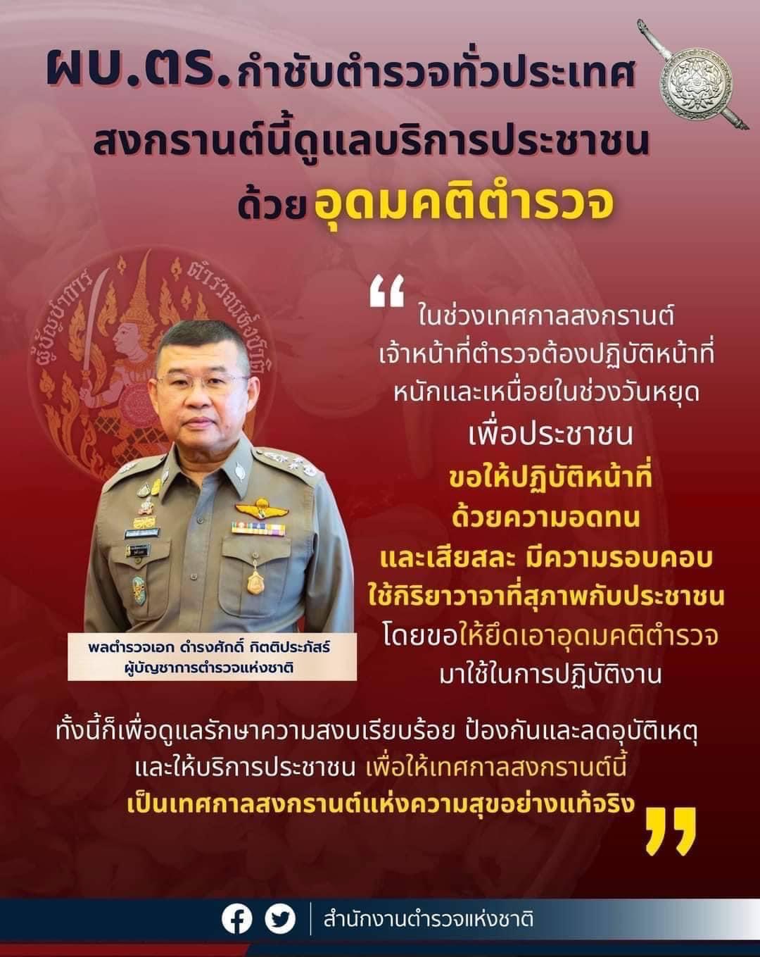 ในช่วงเทศกาลสงกรานต์เจ้าหน้าที่ตำรวจต้องปฏิบัติหน้าที่หนักและเหนื่อยในช่วงวันหยุด เพื่อประชาชนขอให้ป