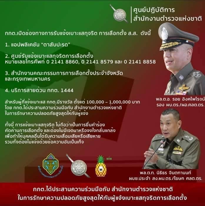 กกต. เปิดช่องทางการรับแจ้งเบาะแสทุจริต การเลือกตั้งสมาชิกสภาผู้แทนราษฎร ดังนี้ ทั้งนี้ เมื่อแจ้งเหตุ