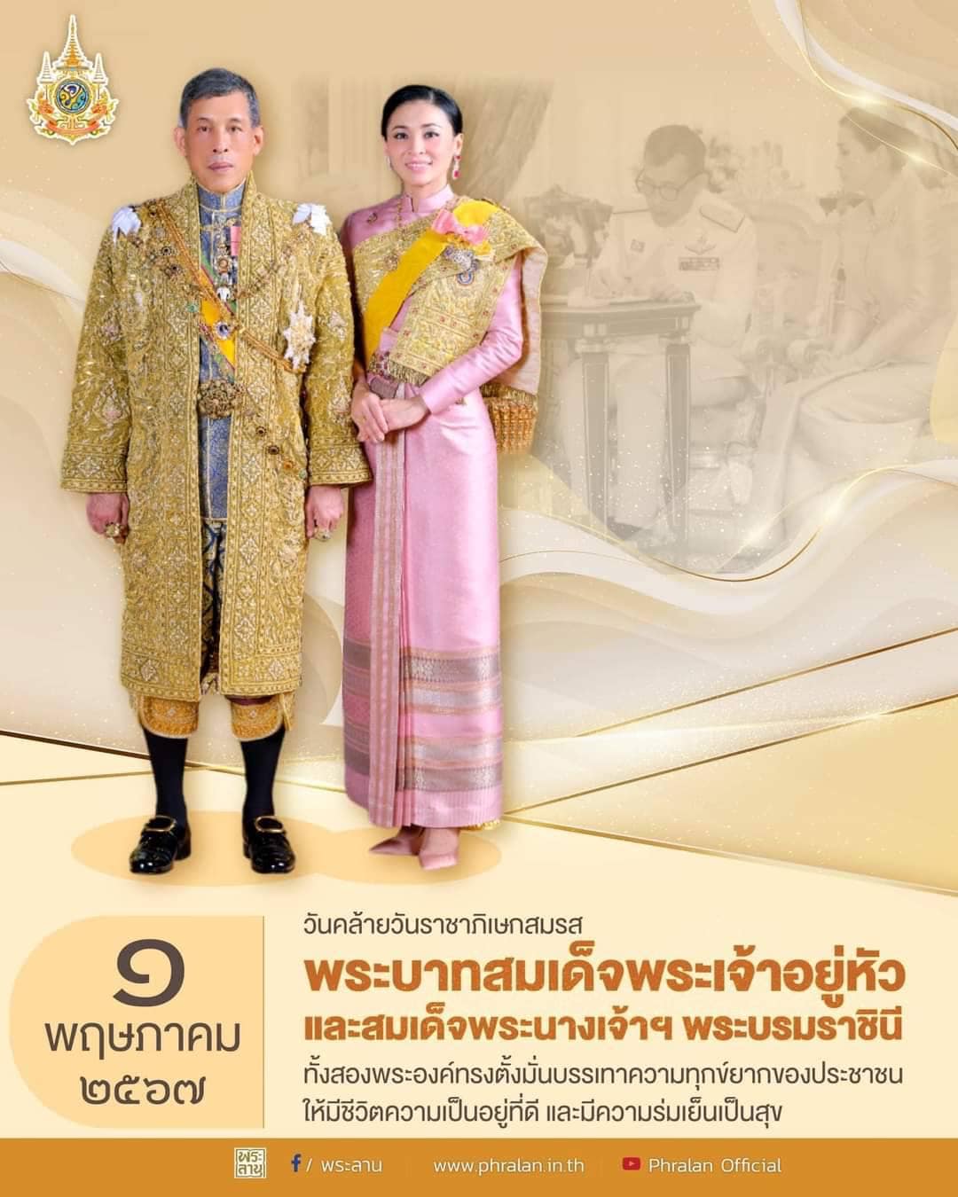 ๑ พฤษภาคม ๒๕๖๗ เป็นวันคล้ายวันราชาภิเษกสมรสพระบาทสมเด็จพระเจ้าอยู่หัว และสมเด็จพระนางเจ้าฯ พระบรมราช