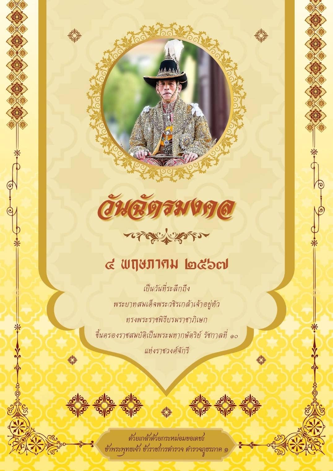 วันที่ ๔ พฤษภาคม ๒๕๖๗ วันฉัตรมงคล “เราจะสืบสานรักษาและต่อยอด และครองแผ่นดินโดยธรรม เพื่อประโยช