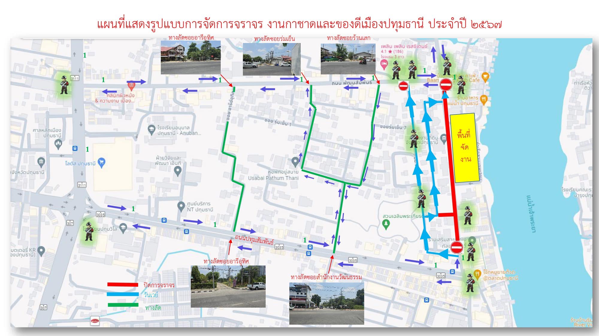 แผนที่แสดงรูปแบบการจัดการจราจร งานกาชาดและของดีเมืองปทุมธานี ประจำปี 2567 วันที่ 10 – 19 พ.ค.67