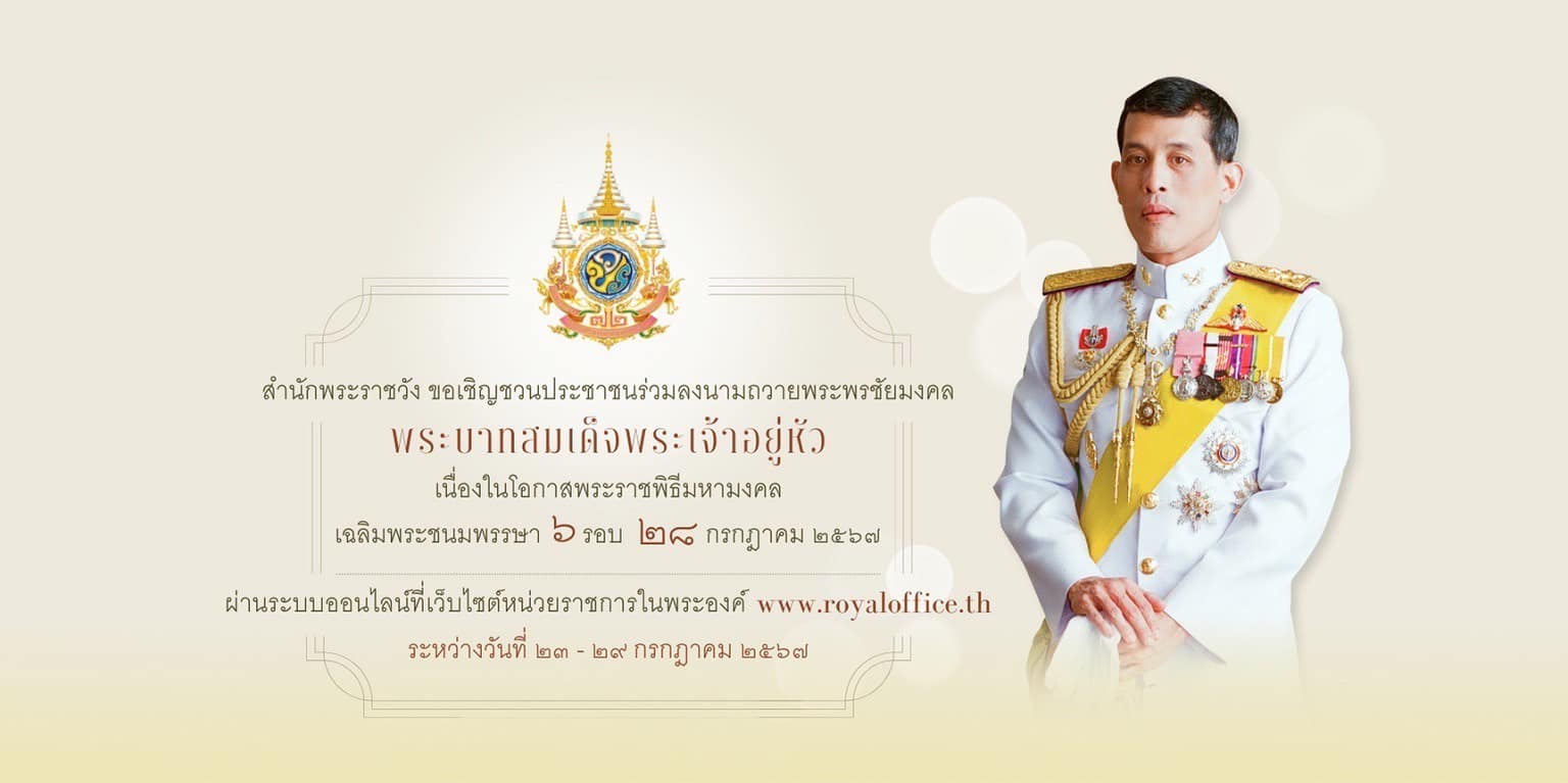 สำนักพระราชวัง ขอเชิญชวนประชาชนร่วมลงนามถวายพระพรชัยมงคลพระบาทสมเด็จพระเจ้าอยู่หัว เนื่องในโอกาสพระร