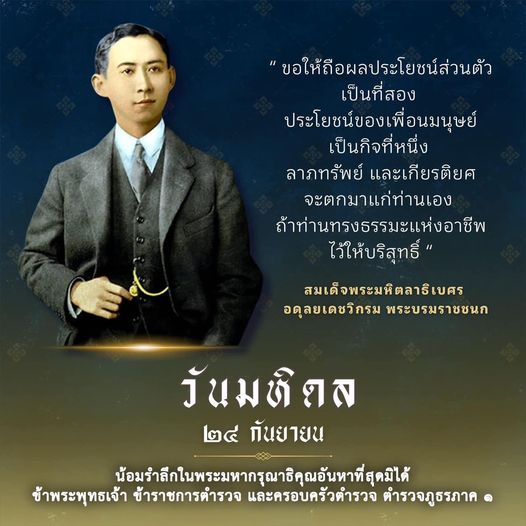 วันมหิดล 24 กันยายน “ ขอให้ถือผลประโยชน์ส่วนตัวเป็นที่สอง ประโยชน์ของเพื่อนมนุษย์เป็นกิจที่หนึ่ง ลาภ