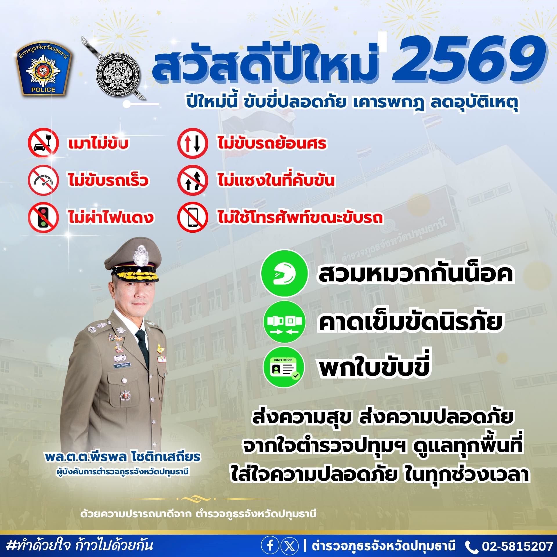 สวัสดีปีใหม่ 2569 ตำรวจภูธรจังหวัดปทุมธานี พร้อมดูแลความปลอดภัยในทุกเส้นทางการเดินทางของพี่น้องประชา
