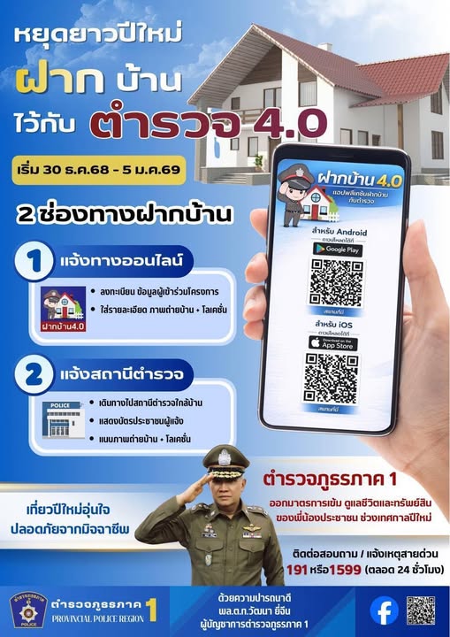 หยุดยาวปีใหม่ ฝากบ้านไว้กับตำรวจ 4.0 เที่ยวปีใหม่อุ่นใจปลอดภัยจากมิจฉาชีพ เริ่ม 22 ธันวาคม 2568 R