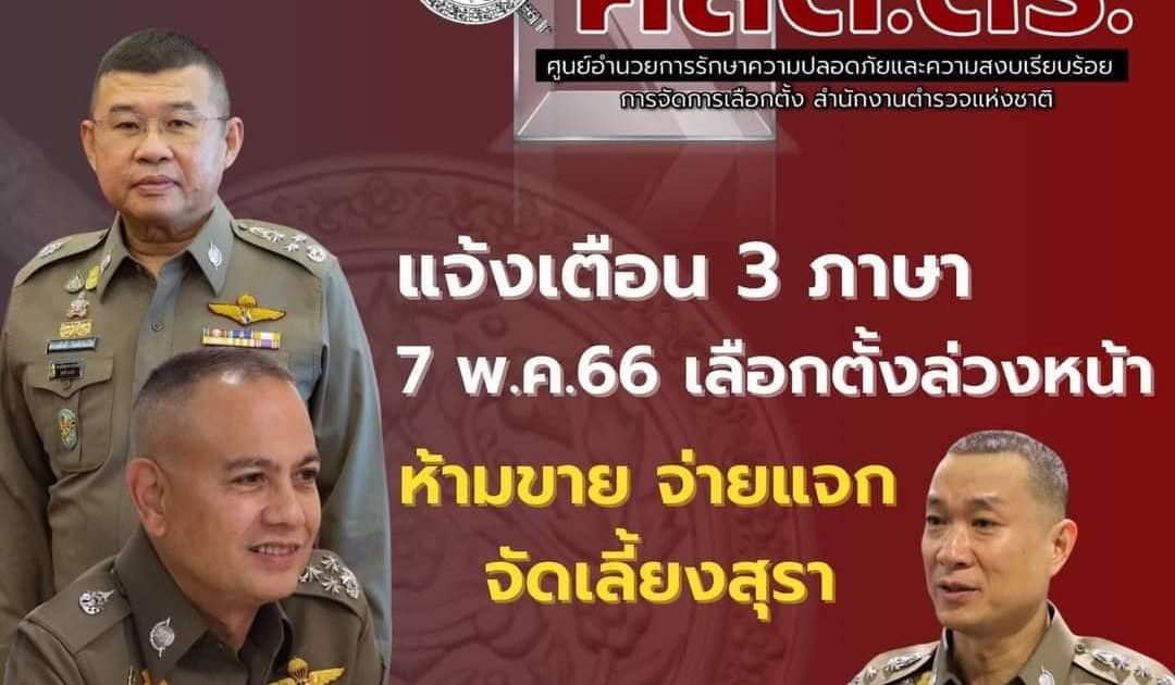 ภายใต้อำนวยการของ พล.ต.อ.ดำรงศักดิ์ กิตติประภัสร์ ผู้บัญชาการตำรวจแห่งชาติ ( ฝผบ.ตร.)พล.ต.อ.รอย อิงคไพโรจน์ รอง ผบ.ตร./ผอ.ศลต.ตร. มอบหมายให้ พล.ต.ท.นิธิธร จินตกานนท์ โฆษกศูนย์อำนวยการรักษาความปลอดภัยและความสงบเรียบร้อยการจัดการเลือกตั้ง สำนักงานตำรวจแห่งชาติ (ศลต.ตร.) ประชาสัมพันธ์พี่น้องประชาชนชาวไทย ชาวต่างชาติ รวมถึงนักท่องเที่ยว เกี่ยวกับกฎหมายการเลือกตั้งที่สำคัญ โดยในวันที่ 7 พฤษภาคม 2566 ซึ่งเป็นวันเลือกตั้ง ส.ส. ล่วงหน้านั้น